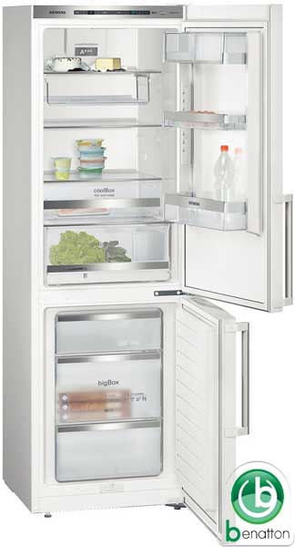 Описание SIEMENS KG 36EAW40:Общие характеристики Общий объем, л 300 Управление электронное LED дисплей Кол-во компрессоров 2 Класс энергопотребления А+++ Потребление энергии, кВтч/год 145 Уровень шума, дБ 38 Время хранения продуктов при отключении питания, ч 35 Производительность замораживания, кг/24ч 14 Климатический класс SN, T Цвет белый